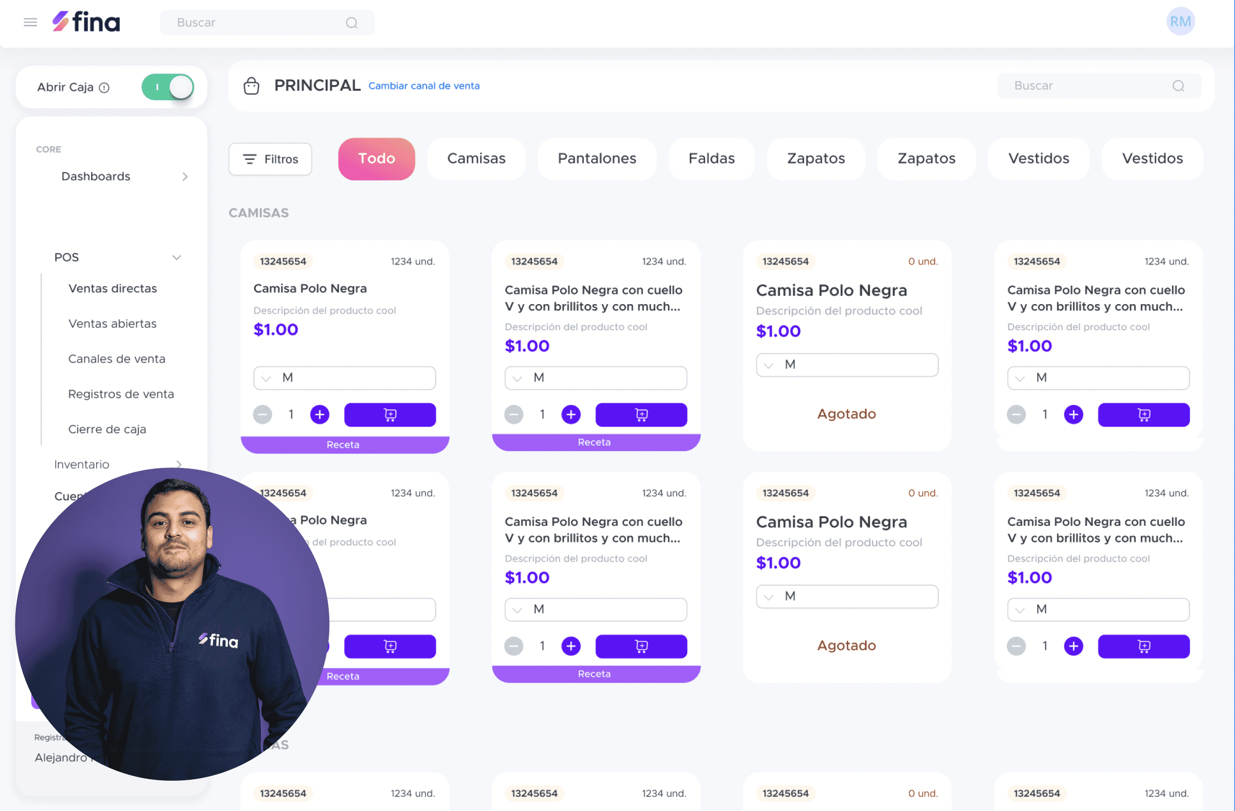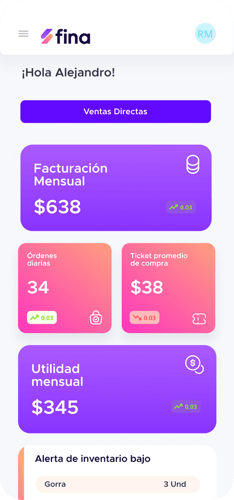 Fina te ayuda a llevar tu inventario por tallas, colores o referencias, saber cuánto ganas por cada venta y registrar todo desde tu celular.